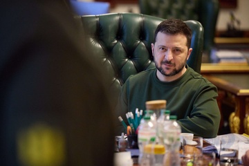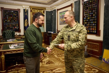 Le président ukrainien Volodymyr Zelensky rencontre les dirigeants militaires ukrainiens au palais présidentiel de Mariinsky à Kiev