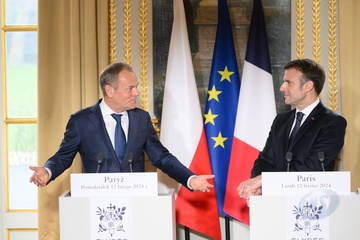 konferencja prasowa Emmanuel Macron i premiera Donald Tusk w palacu prezydenckim w Paryzu 28