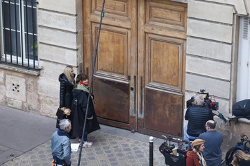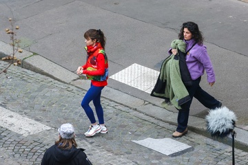 Semi-exclusif - Lily Collins et Camille Razat sur le tournage de la saison 4 de "Emily in Paris" sur Netflix à Paris