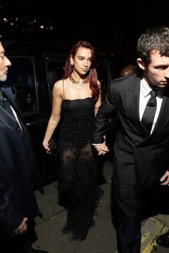 Dua Lipa et son compagnon Callum Turner arrivent à la soirée British Vogue et Tiffany & Co. "Celebrate Fashion and Film Party 2024" chez Annabel