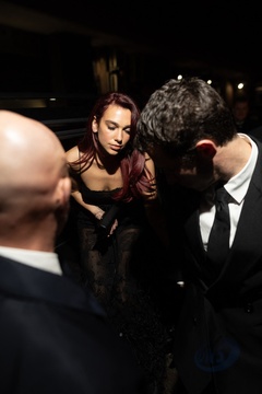 Dua Lipa et son compagnon Callum Turner arrivent au Chiltern Firehouse de Londres