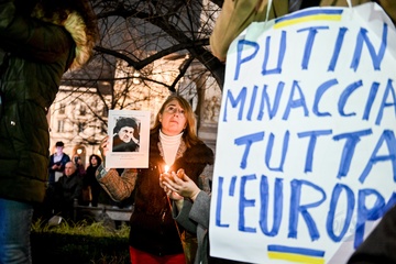 wiec ku pamięci przywódcy rosyjskiej opozycji Aleksieja Nawalnego w Mediolanie, Włochy – 19 lutego 2024 r.