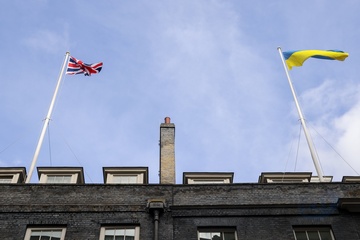 The Ukrainian flag over Downing Street