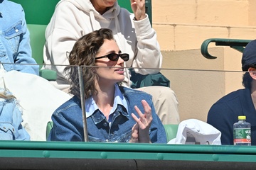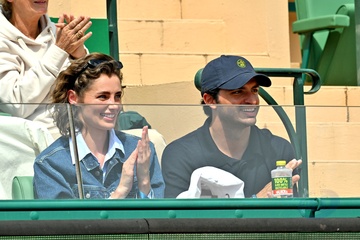 Carlos Sainz i jego partnerka Rebecca Donaldson na trybunach turnieju Monte-Carlo Masters 1000 Tennis Open
