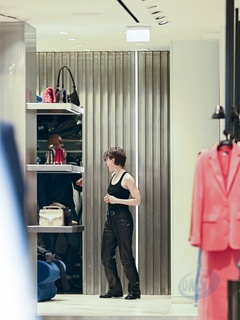 Redcar (Christine and the Queens / Chris) wykonuje przymiarki w sklepie „The Kooples” w Paryżu