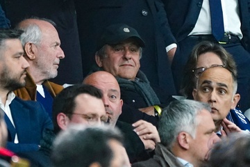 Michel Platini en tribunes lors du match d'Europa Ligue 2024 "Marseille - Benfica (1-0 / tab 4-2)" au stade Vélodrome à Marseille