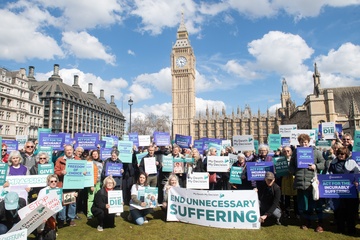 Debata na temat prawa dotyczącego wspomaganego umierania w Wielkiej Brytanii przed parlamentem gromadzi zwolennikow i przeciwnikow.