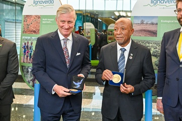 Król Belgii Filip z wizytą na wystawie „Lignaverda” w Windhoek podczas swojej podróży roboczej do Namibii