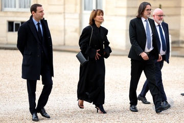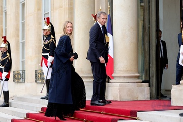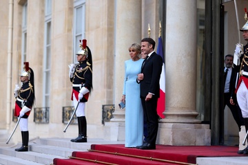 Arrivée des invités au dîner d'Etat en l'honneur du président chinois Xi Jinping et de sa femme la Première Dame Peng Liyuan au palais présidentiel de l'Elysée à Paris (Brigitte Macron Emmanuel Macron)