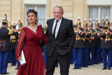 Arrivée des invités au dîner d'Etat en l'honneur du président chinois Xi Jinping et de sa femme la Première Dame Peng Liyuan au palais présidentiel de l'Elysée à Paris (Salma Hayek)