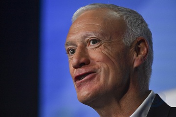 Conférence de presse de Didier Deschamps après avoir annoncé sa liste pour disputer l'Euro 2024, qui débute le 14 juin en Allemagne sur le plateau de TF1 à Boulogne