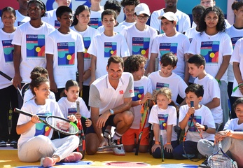 Évenement Uniqlo : Roger Federer inaugure un court de tennis à la Courneuve et participe à une session d'entrainement avec la communauté de la Courneuve (Roger Federer)