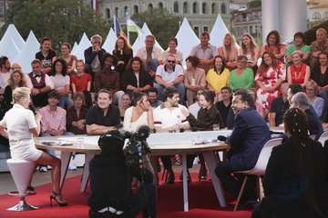 Exclusif - Plateau de l'émission "C à vous" lors du 77ème Festival International du Film de Cannes