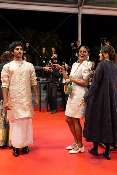 B - Montée des marches du film «All we imagine as light» lors du 77ème Festival International du Film de Cannes (Kani Kusruti, Payal Kapadia, Divya Prabha)
