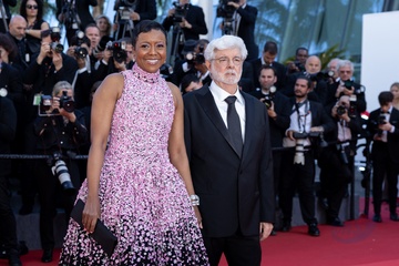 B - Montée des marches pour la cérémonie de clôture du 77ème Festival International du Film de Cannes au Palais des Festivals à Cannes (George Lucas Mellody Hobson)