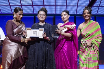 B - Cérémonie de clôture du 77ème Festival International du Film de Cannes au Palais des Festivals à Cannes (Chhaya Kadam, Payal Kapadia, Divya Prabha, Kani Kusruti)