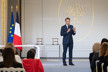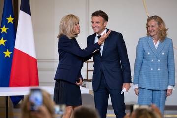 Prezydent Republiki Francuskiej Emmanuel Macron i pierwsza dama Brigitte Macron wręczają nagrody „Nie molestowaniu 2024” w Pałacu Elizejskim w Paryżu 41