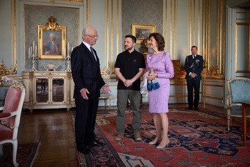 Prezydent Ukrainy Wołodymyr Zełenski podczas swojej wizyty roboczej w Szwecji spotkał się z królem Karolem XVI Gustawem i królową Szwecji Sylwią 10