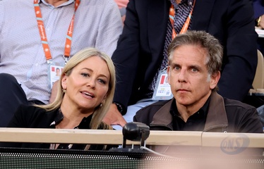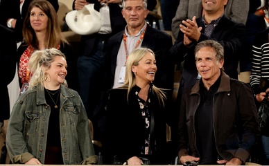 Ben Stiller et sa femme Christine Taylor dans les tribunes des Internationaux de France de tennis de Roland Garros 2024 à Paris