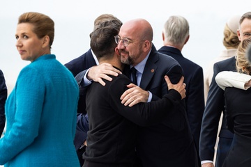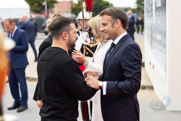 Le président de l'Ukraine lors de la cérémonie internationale d'Omaha Beach pour la commémoration du 80ème anniversaire du débarquement (D-Day) (Wolodymir Zelenski Prez Macron)