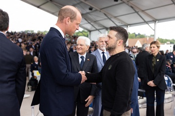 Le président de l'Ukraine lors de la cérémonie internationale d'Omaha Beach pour la commémoration du 80ème anniversaire du débarquement (D-Day) (Ksiaze William Wolodymir Zelenski)