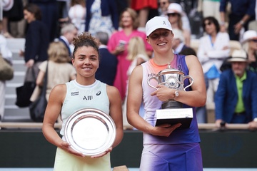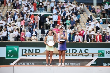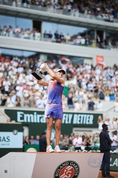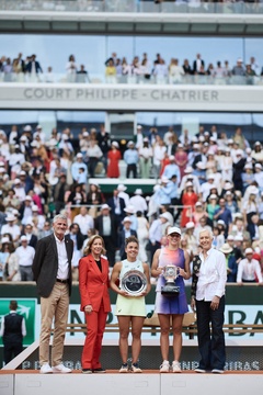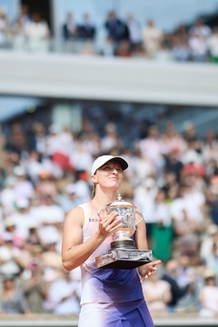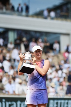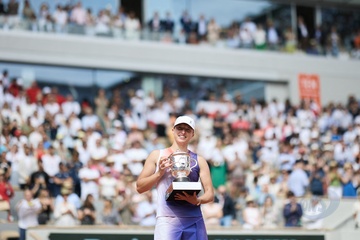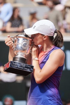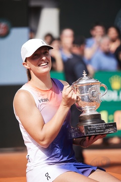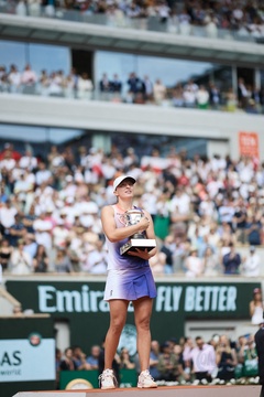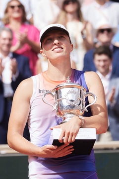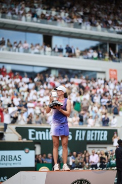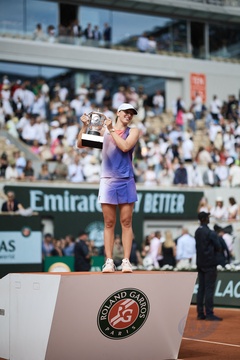 CM - Remise du trophée à Iga Swiatek à l'issue de la finale Dames des Internationaux de Tennis de Roland Garros à Paris (Iga Swiatek)