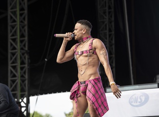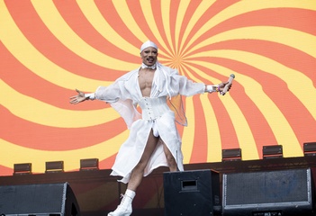 Rhys’s Pieces hosting the main stage at Mighty Hoopla Festival, Brockwell Park, London on 01 June 2024