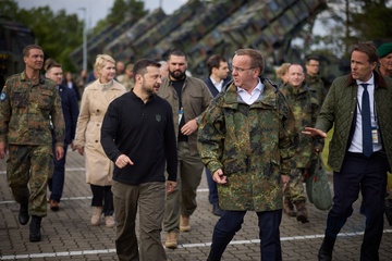 Prezydent Ukrainy Wołodymir Zełenski w towarzystwie federalnego ministra obrony Niemiec Borisa Pistoriusa odwiedził 21. grupę rakiet ziemia-powietrze w Sanitz 23