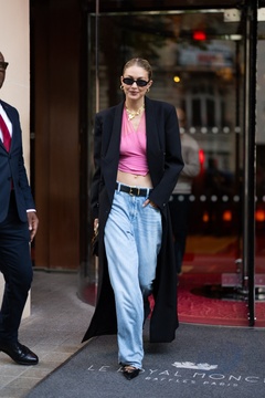 Gigi Hadid à la sortie de son hôtel le Royal Monceau à Paris