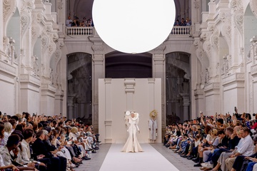 Anna Cleveland au défilé de mode Thom Browne Haute-Couture automne-hiver 2024/2025 lors de la Fashion Week de Paris