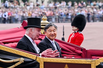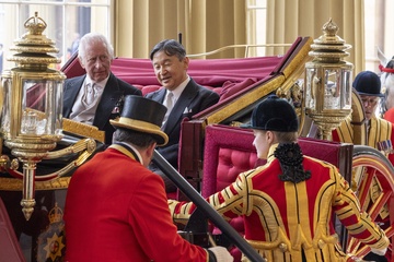 Ceremonia powitalna i przejażdżka powozem podczas wizyty cesarza Japonii Naruhito w Londynie