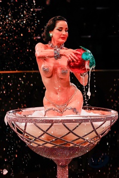 Dita Von Teese zamyka pokaz mody Alexis Mabille Haute-Couture jesień-zima 2024/2025 podczas Tygodnia Mody w Paryżu