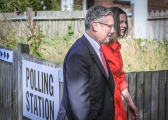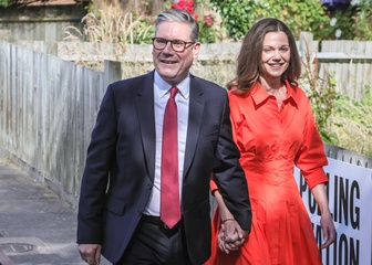 Sir Keir Starmer and his wife voting in the GE, Kentish Town, London, UK