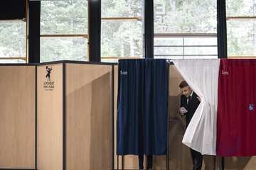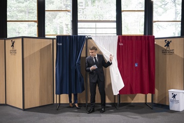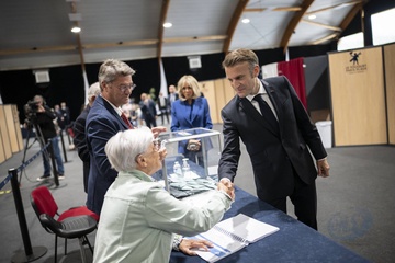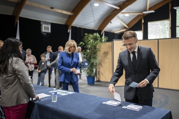 Emmanuel Macron, Prezydent Republiki Francuskiej i Pierwsza Dama Brigitte Macron, głosują za drugą turą wyborów legislacyjnych w Le Touquet” 29