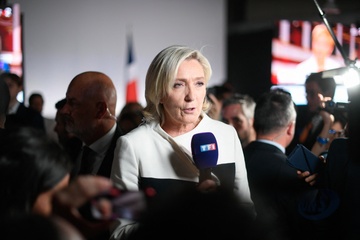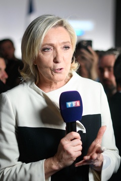 Marine Le Pen podczas wieczoru wyborczego Zgromadzenia Narodowego podczas drugiej tury wyborów legislacyjnych w Parc Floral w Paryżu
