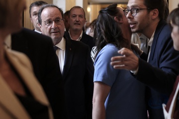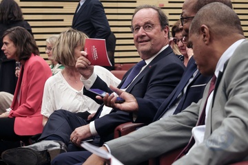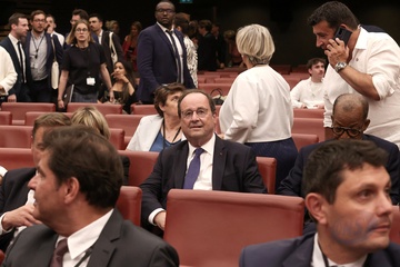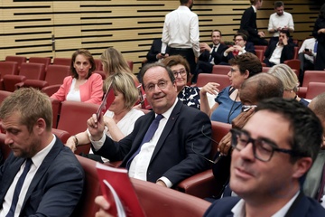 Były prezydent socjalistyczny (PS), nowo wybrany zastępca François Hollande, uczestniczy w posiedzeniu partii socjalistycznej podczas dnia powitalnego deputowanych 17. kadencji w Zgromadzeniu Narodowym w Paryżu. 24