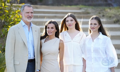 La famille royale d'Espagne arrive à l'hôtel Melia Lloret de Mar pour une réception en l'honneur des lauréats du prix Princesse de Gérone (Princess of Girona awards)