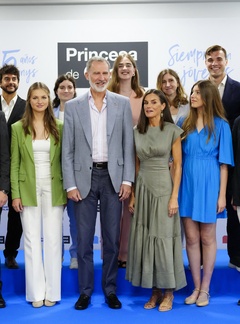 La famille royale d'Espagne lors d'une réunion avec le Conseil consultatif de la jeunesse de la Fondation Princesse de Gérone (FPdGi), à l'hôtel Meliá à Lloret de Mar
