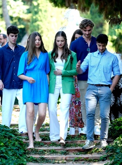 La princesse héritière Leonor, l'infante Sofia lors d'une rencontre avec des jeunes des programmes de la Fondation Princesse de Gérone aux Jardins de Sainte Clotilde à Lloret de Mar
