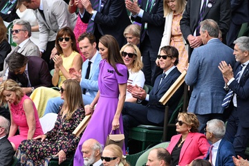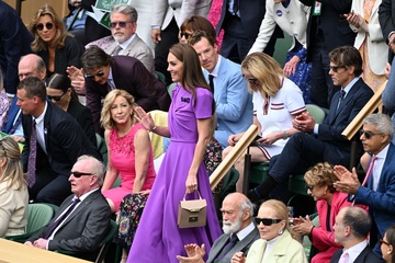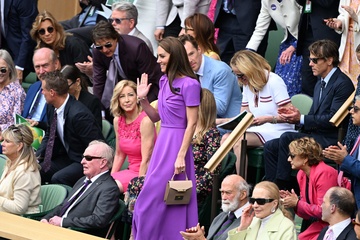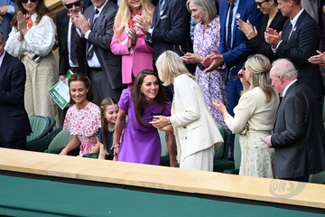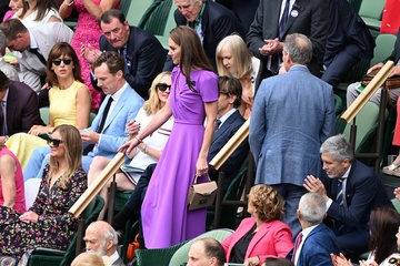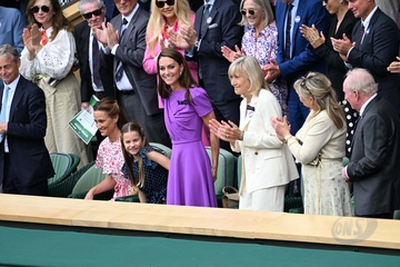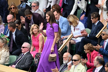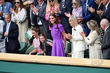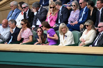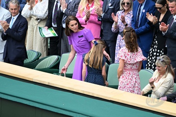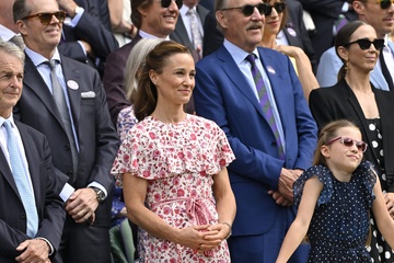 Catherine (Kate) Middleton z księżniczką Charlotte i Pippą Middleton na trybunach finału turnieju Wimbledonu 2024