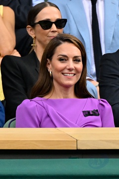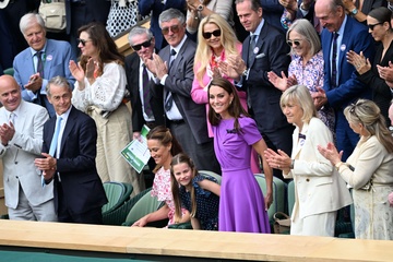 Catherine (Kate) Middleton avec la princesse Charlotte et Pippa Middleton dans les tribunes de la finale du tournoi de Wimbledon 2024
