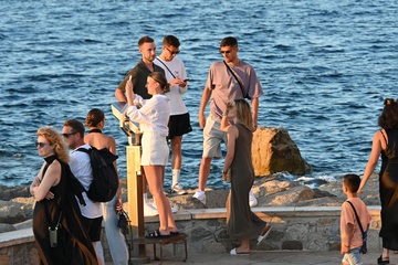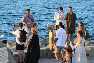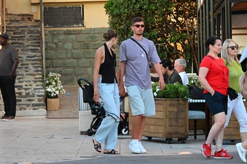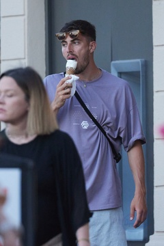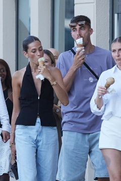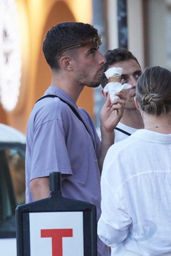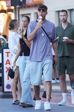 Kai Havertz i jego partnerka Sofia Weber jedzą lody podczas spaceru z przyjaciółmi po porcie Saint-Tropez