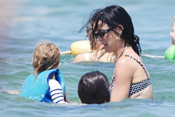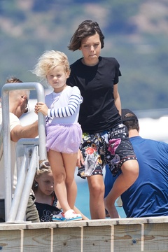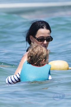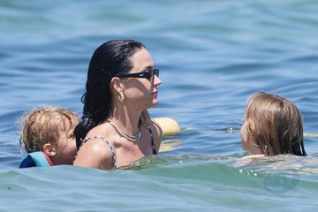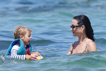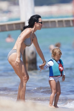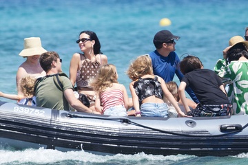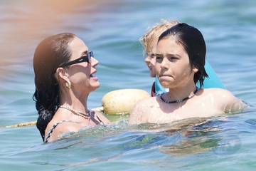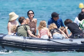 Katy Perry, jej narzeczony Orlando Bloom, ich córka Daisy Dove, syn Orlando Flynn Christopher i przyjaciele przybywają do Club 55 w Saint-Tropez