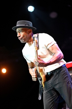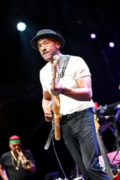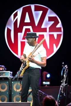 Marcus Miller, basista, amerykański kompozytor i aranżer, koncertował na scenie Pinède Gould podczas 63. edycji Jazz à Juan