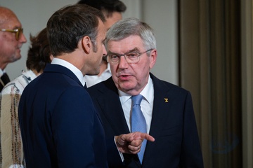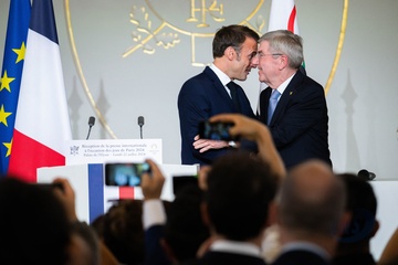 Reception de la presse internationale à l'Elysée, a l'occasion des Jeux de Paris 2024 (Emmanuel Macron Thomas Bach)