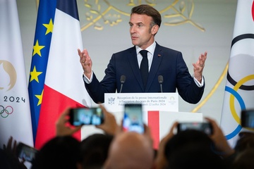 Przyjęcie prasy międzynarodowej w Pałacu Elizejskim z okazji Igrzysk Paryż 2024
