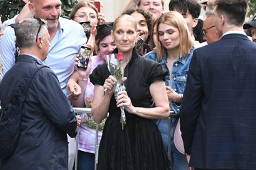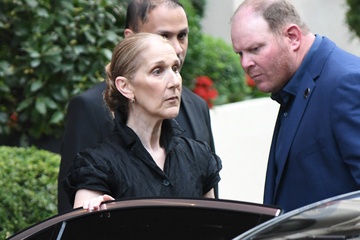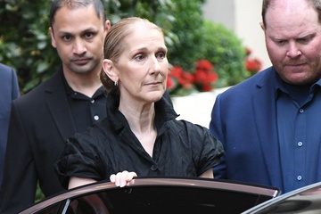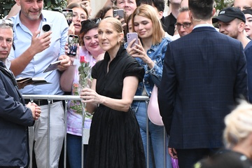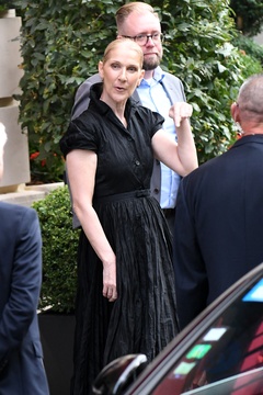 Céline Dion à la sortie de l'hôtel Royal Monceau à Paris avant l'ouverture des Jeux Olympiques (JO) de Paris 2024