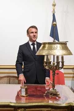 Emmanuel Macron i jego żona Brigitte podczas inauguracji Maison de l'Elysée z okazji Igrzysk Olimpijskich Paryż 2024