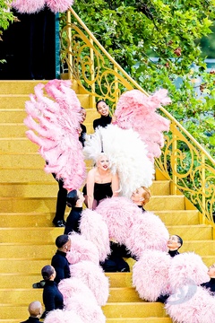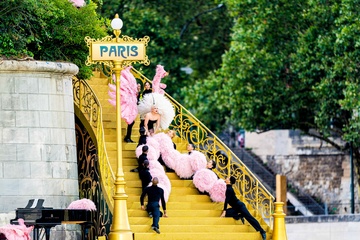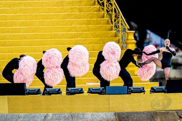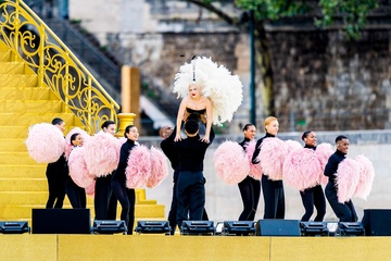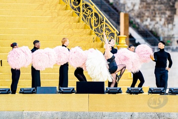 Lady Gaga podczas próby otwarcia Igrzysk Olimpijskich w Paryżu w 2024 r. (OG) na Sekwanie w Paryżu