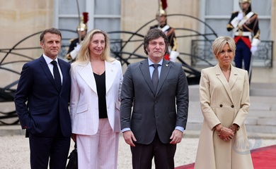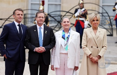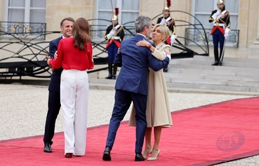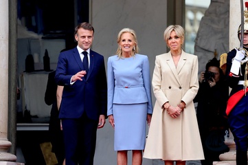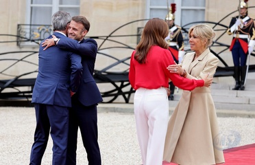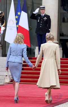 Emmanuel et Brigitte Macron accueillent les chefs d'Etat et de gouvernement présents pour la cérémonie d'ouverture des Jeux Olympiques de Paris 2024 (JO), au palais de l'Elysée